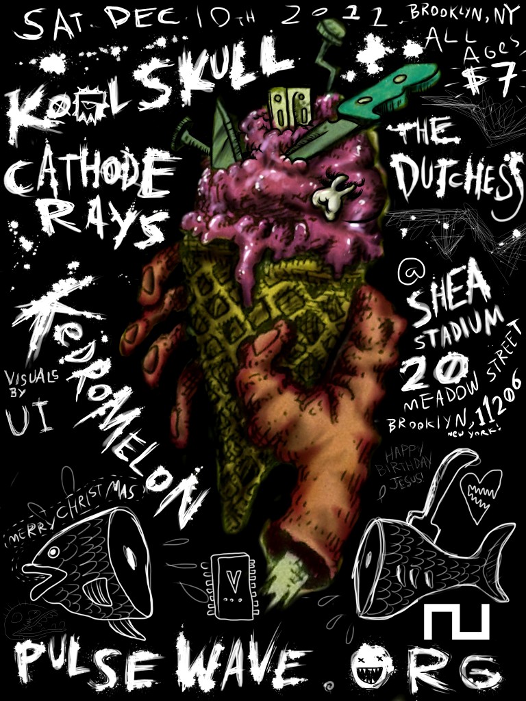 Saturday December 10th – Pulsewave w/ Kedromelon vs. The Duchess, Cathode Rays, KOOL SKULL ||| Visuals by UI