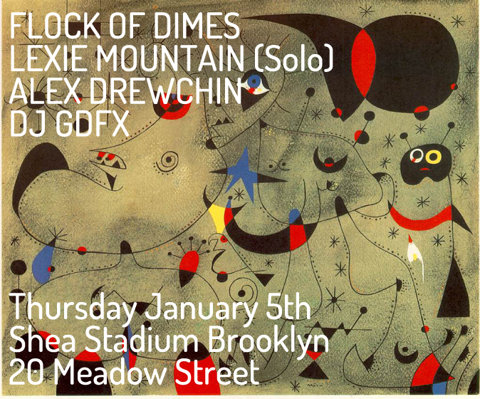 1/5 – Flock of Dimes, Lexie Mountain (solo set), Alex Drewchin, GDFX (DJ)