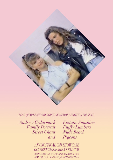 Friday October 22 – Microphone Memory Emotion X Rose Quartz Presents: Andrew Cedermark, Ecstatic Sunshine, Family Portrait, Fluffy Lumbers, Street Chant, Nude Beach & Pigeons